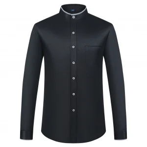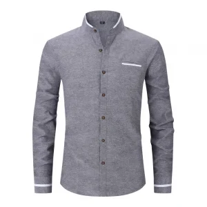 Men’s Banded Collar Dress Shirts with Pocket Long Sleeve Mandarin Collar Versatile Shirt Solid Shirt For Business Activities