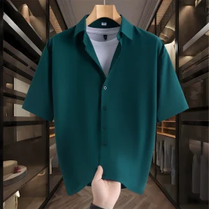 No Ironing Business Casual Shirt Men’s Summer Ice Silk Short-Sleeved Drapey High-End Loose Casual Solid Color Shirts for Men