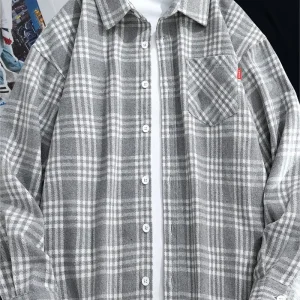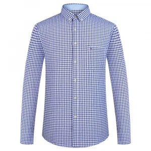 Men’s Plaid Striped Oxford Long Sleeve Button-down Shirts with Pocket, Spring Fall 60% Cotton Versatile Casual Menswear Clothing