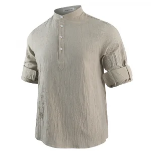 New Men’s Casual Blouse Cotton Linen Shirt Loose Tops Long Sleeve Tee Shirt Spring Autumn Casual Handsome Men’s Shirts