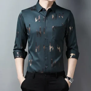 New Men’s Casual Printed Long Sleeved Lapel Shirt for Spring and Autumn Fashion Comfortable Wrinkle Free Top Without Ironing