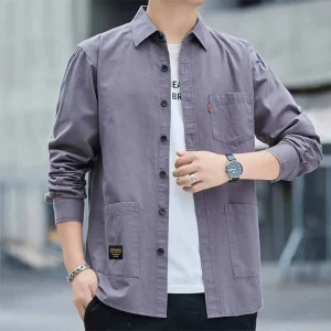 Casual Cotton Oxford Mens Shirts Washed Long Sleeve Pockets Design Regular Fit Shirt 2025 Spring Autumn Basic Men’s Clothing