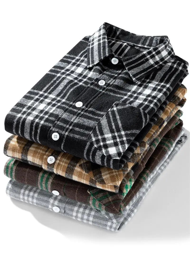 Men Shirt Plaid Flannel Oversize Plus Size 6xl 7xl 8xl 9xl Fashion Casual Loose Long Sleeve Cotton Soft Dress High Quality